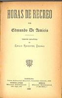 • Portada: HORAS DE RECREO | por | Edmundo De Amicis | Versión española | de | Emilo Reverter Delmas | Barcelona | Casa editorial Maucci , Consejo Ciento, 296 | 1899